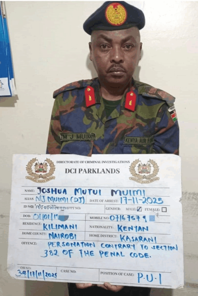 DCI detectives in Nairobi on Tuesday arrested a man accused of masquerading as a Kenya Defence Forces (KDF) brigadier while running an elaborate recruitment scam targeting desperate job seekers.
