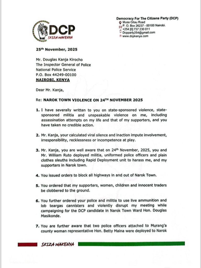 In a strongly worded letter, Gachagua dared Kanja to resign, as he accused the police boss of failing to act on what he described as coordinated violence against members of the opposition.